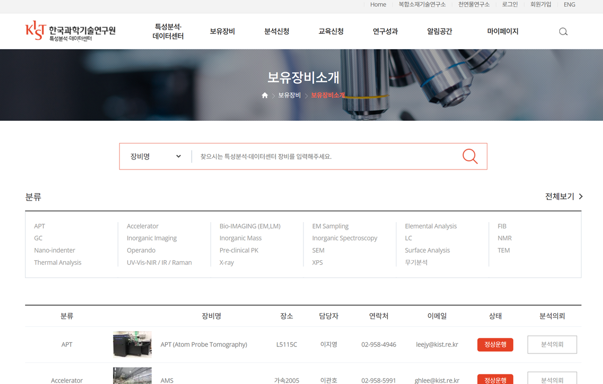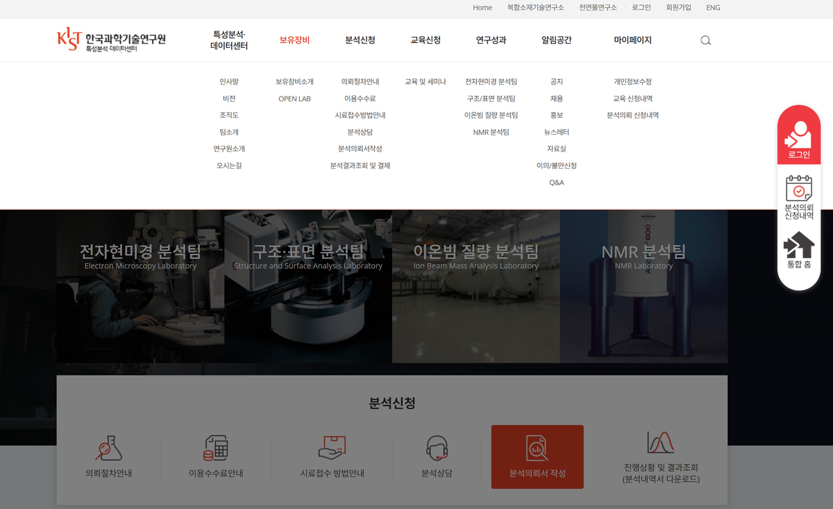 분석 신청은 KIST 특성분석센터 홈페이지를 통해 진행됩니다.