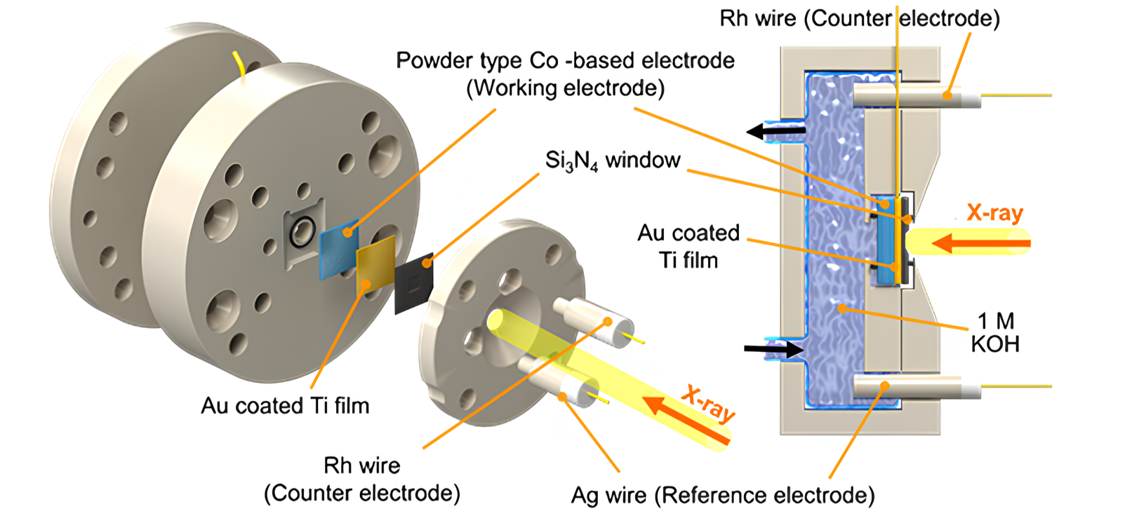 포항가속기연구소(PAL) KIST 전용 빔라인을 활용하여, 전기화학 반응 중 촉매 활성 사이트의 원자 수준 변화와 가벼운 원소의 전자 구조를 실시간으로 분석 가능. Hard X-ray XAFS(PAL 1D)와 Soft X-ray NEXAFS(PAL 10D) 동시 지원.
